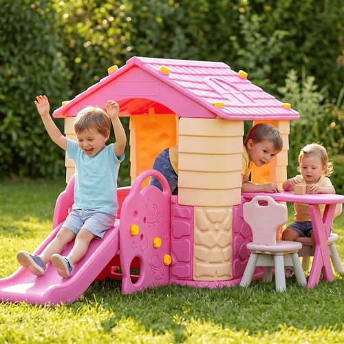 بيت ألعاب للأطفال + زحليقة + 2 كرسي