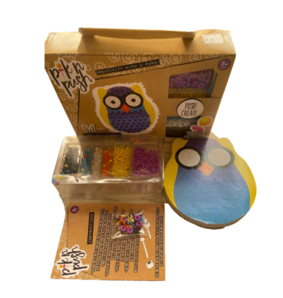 مجموعة أشغال يدوية لتزيين قاعدة فوم على شكل بومة باستخدام دبابيس وخرز بلاستيكي ملوّن. يقوم الطفل بتثبيت الخرز في الأماكن المخصصة لتكوين تصميم زخرفي. تساعد تطوير المهارات اليدوية والتركيز البصري. – منتج تعليمي ممتع وآمن للأطفال. – يُطوّر مهارات اليد والعين. – يساعد على تطوير المهارات الإدراكية.