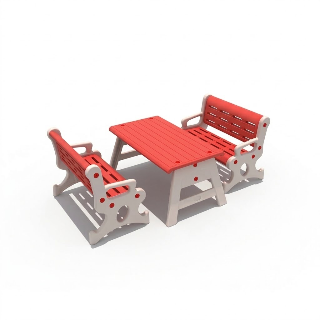 ترابيزة أطفال مصممة مع مقعدين ثنائيين بلون أحمر جذاب، مثالية للحضانات والكيدز إريا للأنشطة التعليمية والترفيهية. تمنح الأطفال مساحة مريحة للجلوس والعمل الجماعي أثناء اللعب والرسم. ✔ سطح ترابيزة متين وسهل التنظيف يناسب الأنشطة اليومية