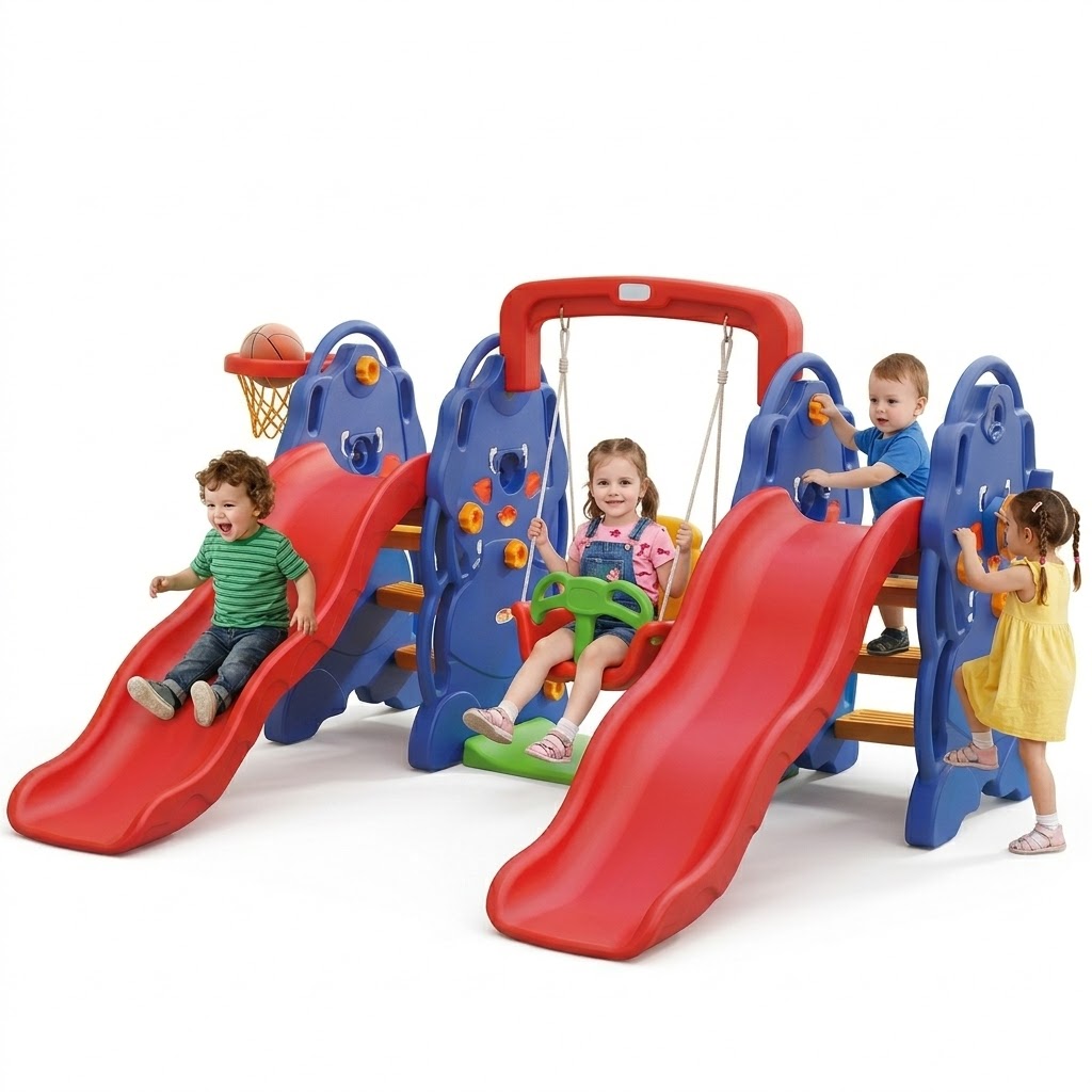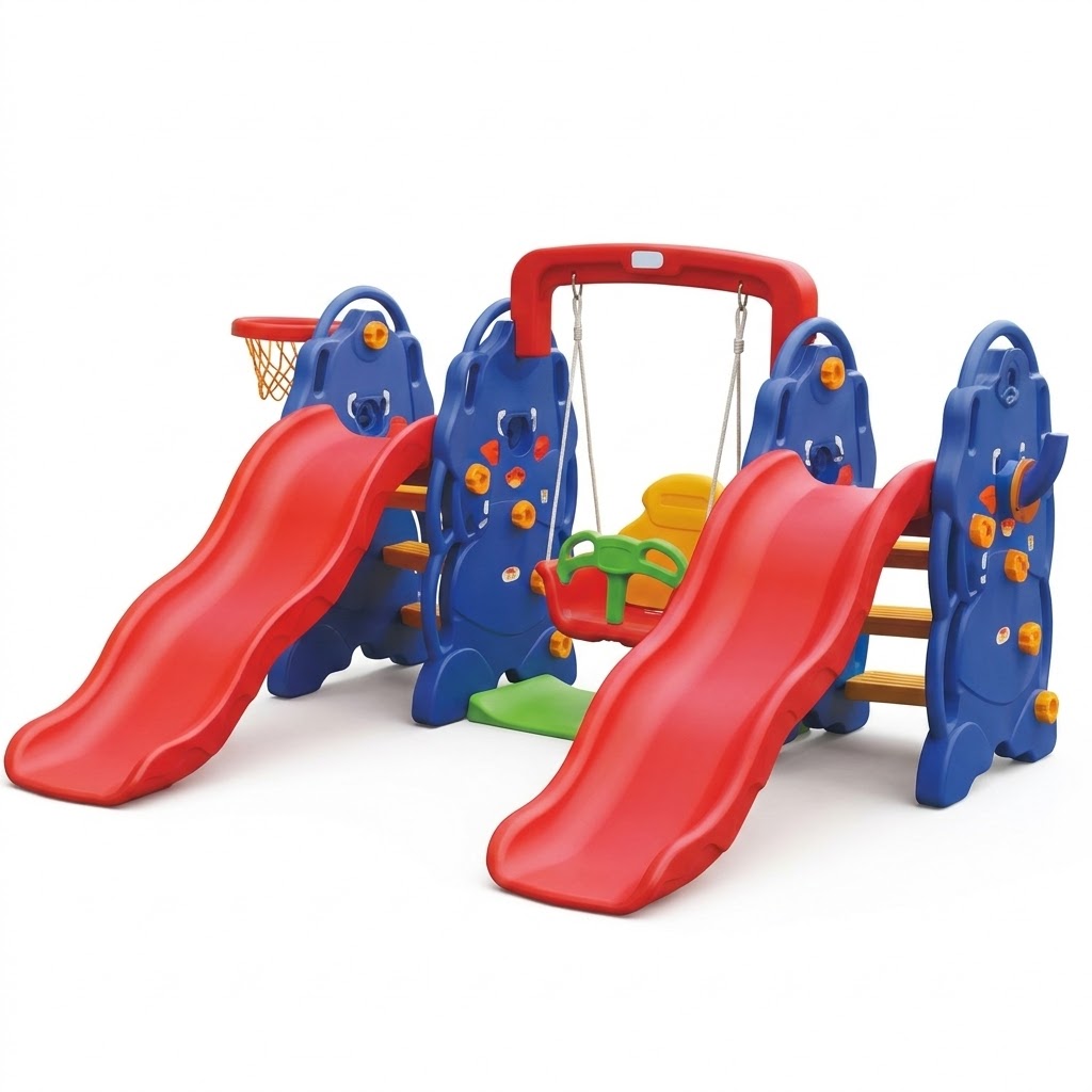 مجمع ألعاب للأطفال يشمل مرجيحة و 2 زحليقة وباسكت