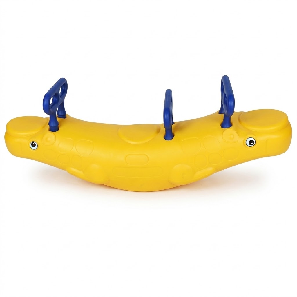 هزاز أطفال ممتع بتصميم تمساح مرح يسمح لثلاثة أطفال باللعب في نفس الوقت. يوفر تجربة لعب جماعية تشجع الأطفال على الحركة والتفاعل داخل المنزل أو الحديقة.