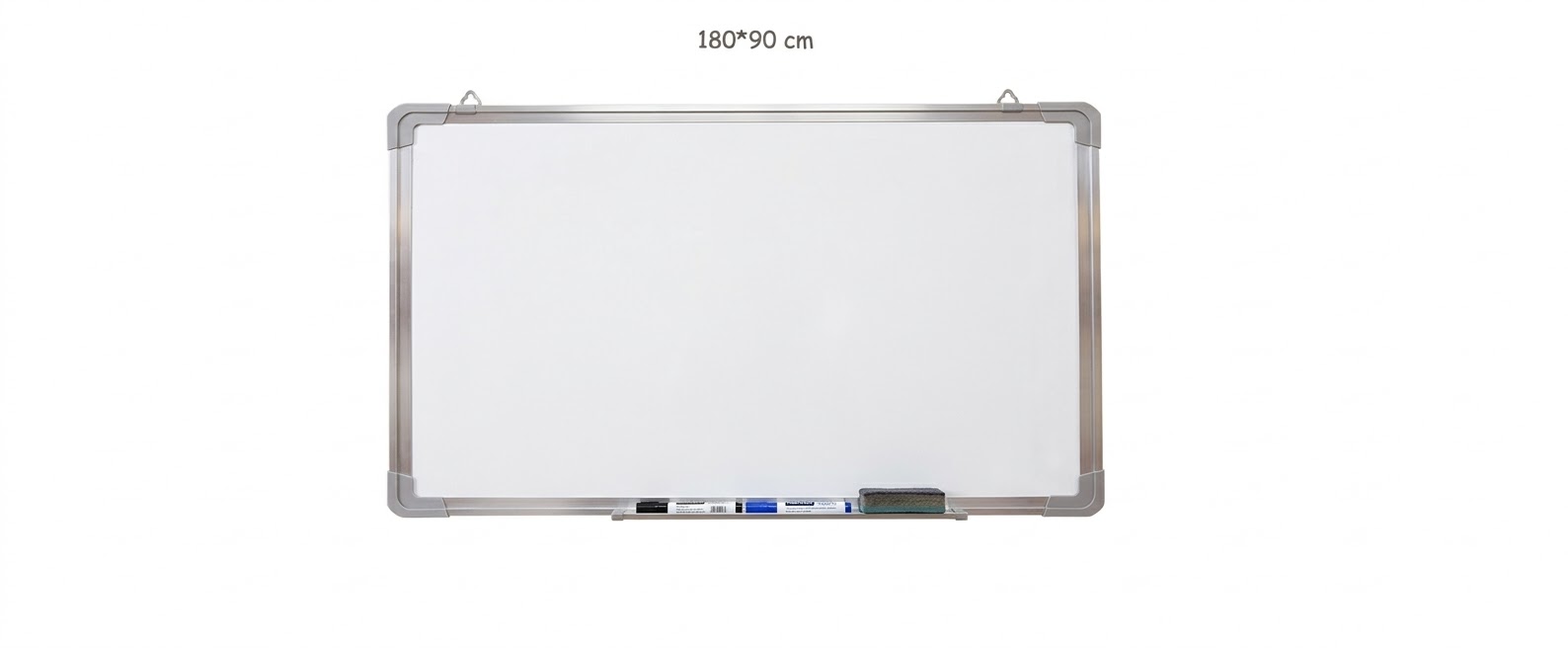 سبورة وايت بورد مستوردة بمقاس 90×180 سم مزودة بإطار ألوميتال قوي، مناسبة للاستخدام في الفصول الدراسية وقاعات التدريب والمكاتب، وتوفر سطح كتابة واضح وسهل المسح. ✔ سطح أملس يسمح بالكتابة الواضحة باستخدام أقلام الماركر